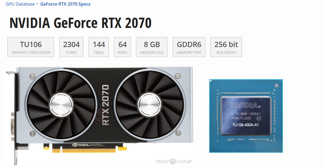 In this example card the RTX 2070 Only Partially Meets having 2304 155 TMUS, 64 ROPS and having a 256 bit BUS Width, with 8 GB of Video memory. Comparing to our reference card requiring 6144 Cores, 192 TMUS, 80 ROPS, 192 Bit while both cards has 8 GB or higher* Overall the Example Card RTX 2070 card will most likely be slower and would be a minimum only to view images but might not allow the software to fully operate as intended or advanced functions.