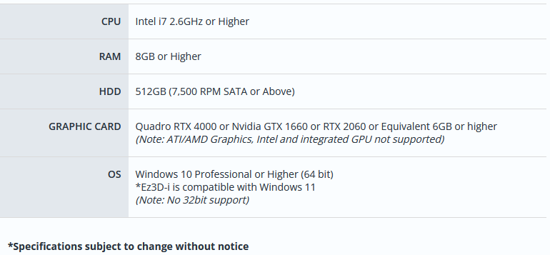 You can use key words or full statement to search by. Alternatively you can simply browse by Category belowThe following requirements are the recommended PC specifications for EzDent-i and Ez3D-i.