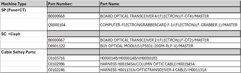 - If the unit does not have the supported card as outlined in Section 3. Please order the following parts from an authorized dealer and have a technician come onsite and call Vatech Supprt: