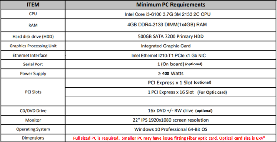 We recommend that your IT visit and locate the Pre-installation Report of your machine by device type by visiting our Pre-installation Report and locate the product type of your machine to verify your specific machine PC specs, as the following are the maximum requirements for optimal performance.