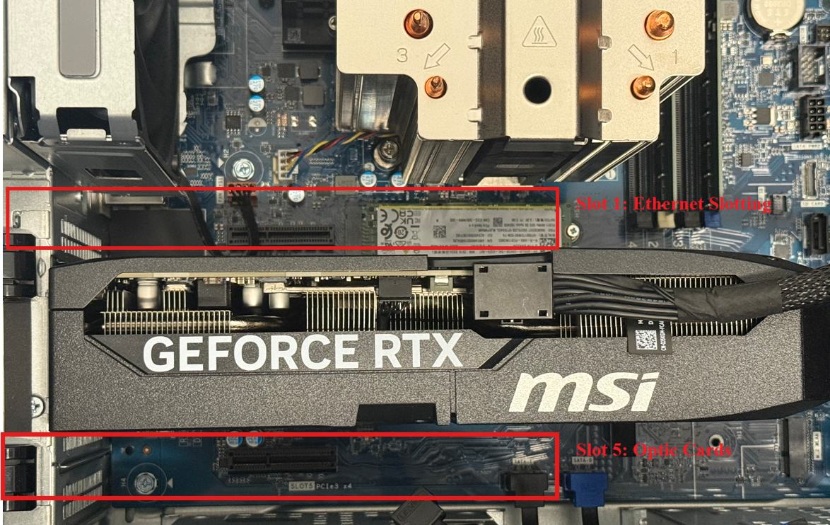 Slot 2: Fiber Card, Slot 4: GPU Card