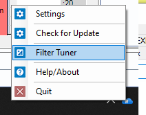 Filter Tuner (System Tray Icon) - Right Click with the SOTA Cloud system tray icon.
