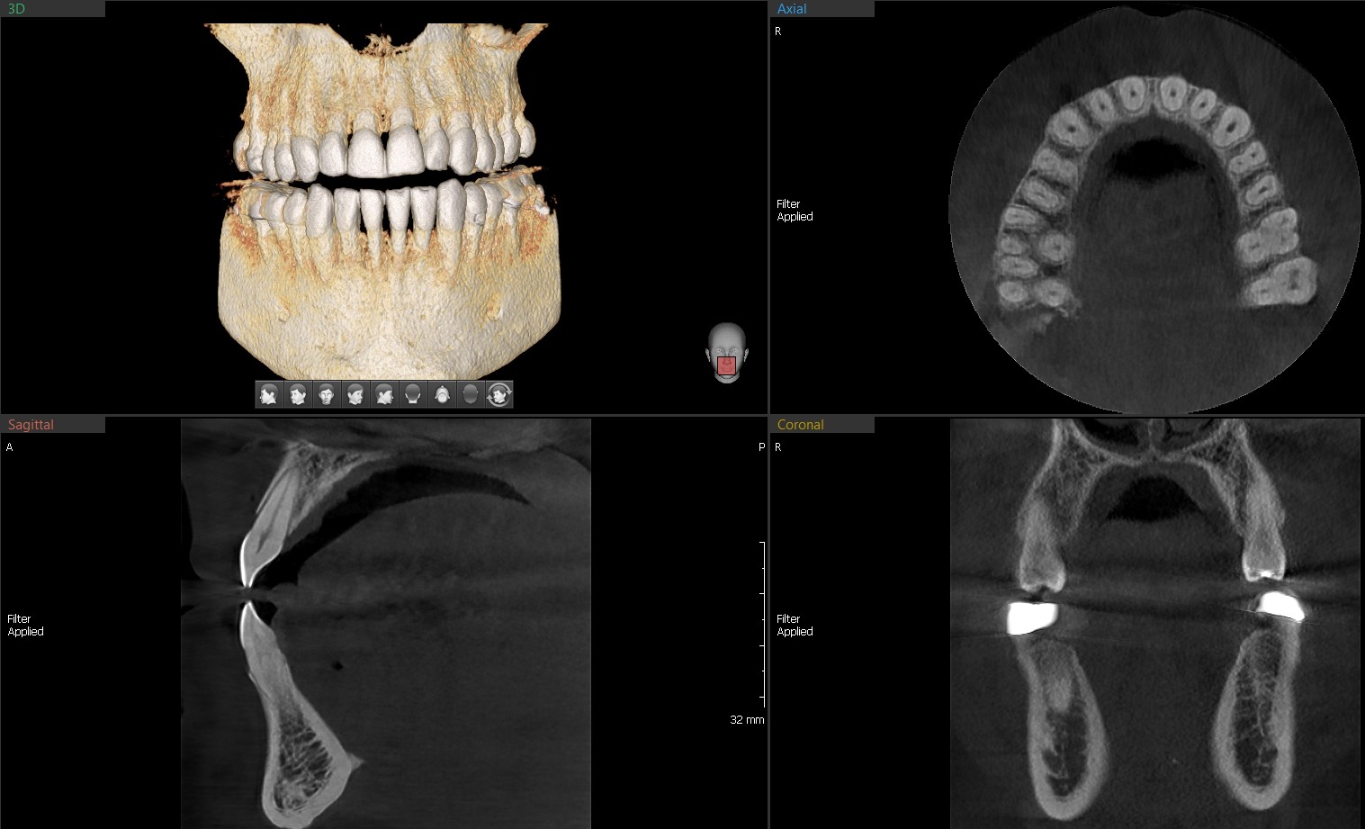 8x8 images enable fundamental diagnoses and treatment planning, including both the maxillary and mandibular areas, in a single scan. It is useful for implant surgeries and diagnoses.